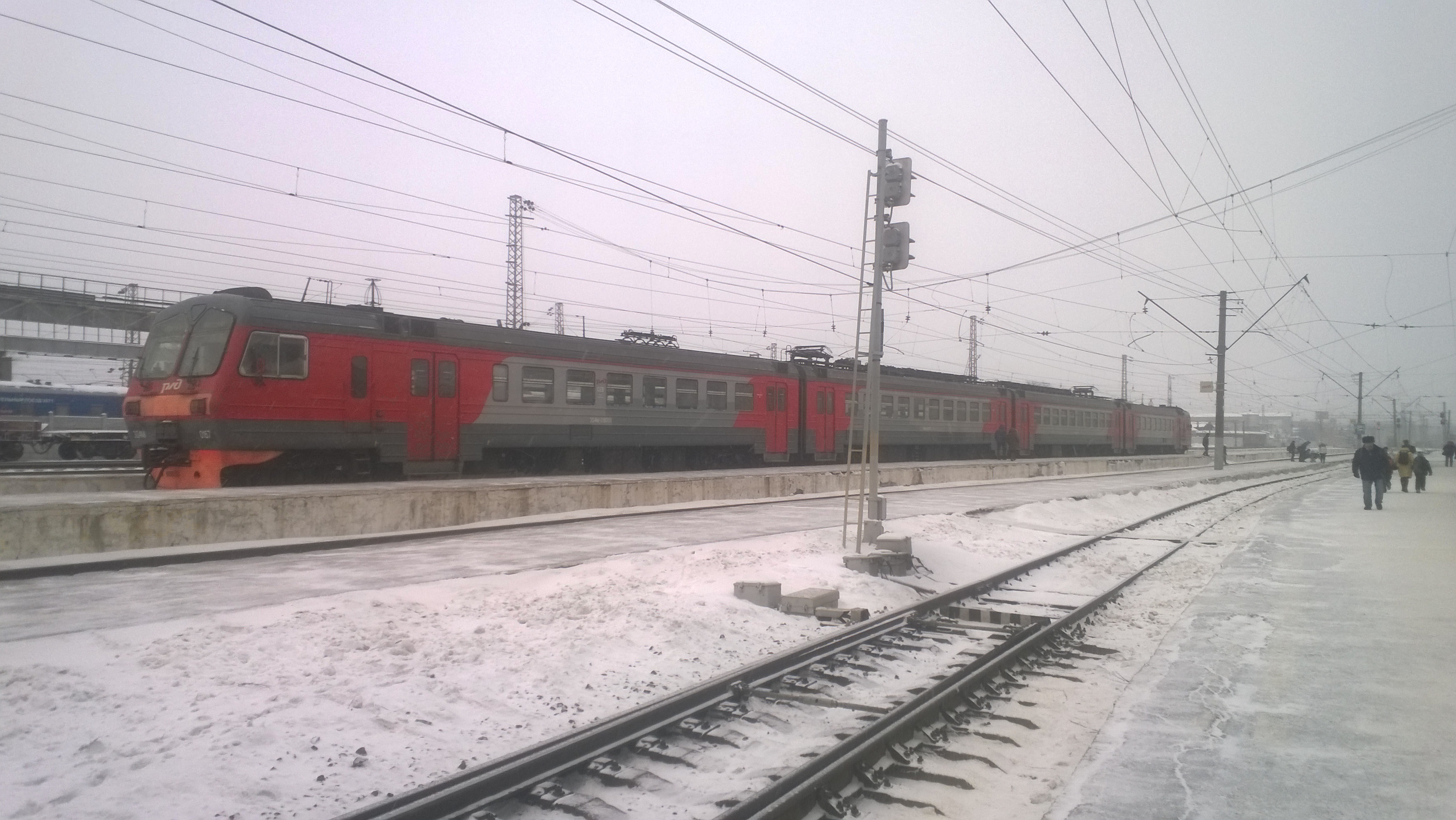 ЭД4М-0167 сообщением Ростов-Яр. - Александров-1 (прибытием в 14:54) на ст. Александров-1. Высадка - около 100 человек. Фото сделано 09.01.16.