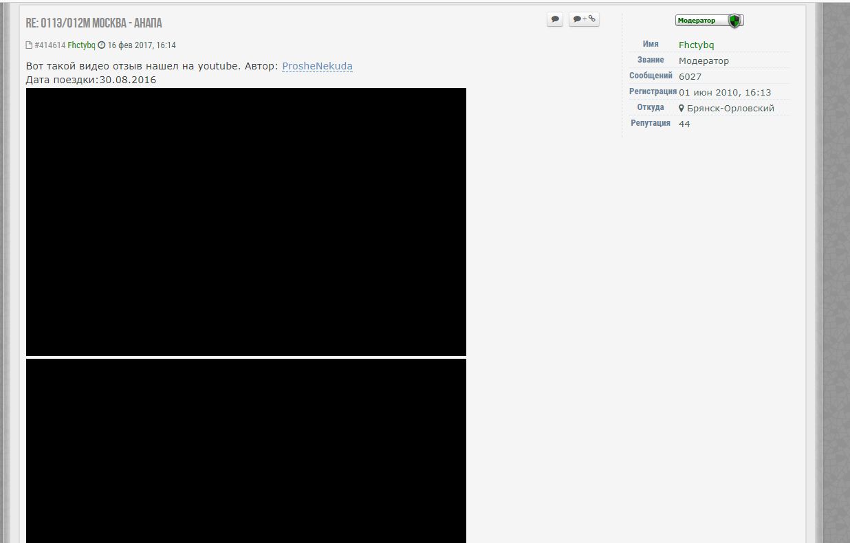 Зашёл сейчас на форум, и, не залогинившись наблюдал вот чёрные квадраты вместо видеороликов..... :*CRAZY*: