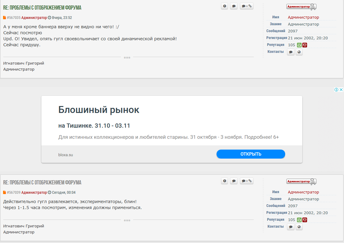 Григорий, снова стало много рекламы на форуме (в мобильной версии и стационарной): реклама не только на ее законных местах, она разделяет и сообщения тем и список форумов! Понимаю, что без рекламы нельзя совсем, но можно сделать так, чтобы реклама не была так сильно заметна?