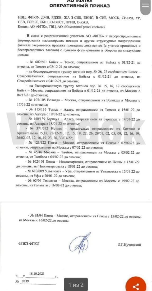 Компания отменяет пассажирские поезда на 2021 год и на весну 2022. Причина – отнюдь не коронавирус, как можно было бы подумать, а - внимание - реорганизация в ФПК.
