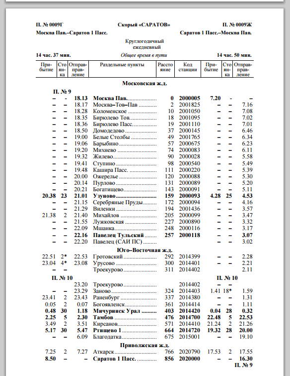 машржд: а можно скинуть служебку по ЮВЖД 2016 на поезд номер 9/10 "Саратов"
