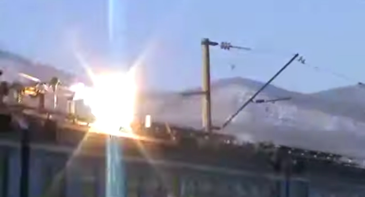 Токоприемник у электропоезда просто свернуло, потом полыхнула дуга :=-O: