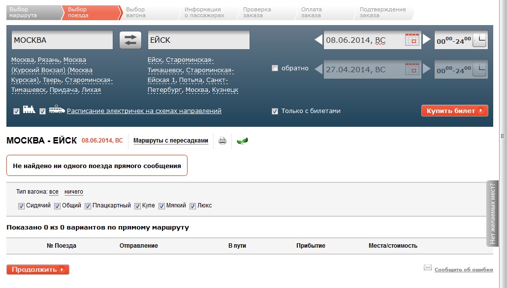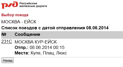 Почему то через обычный сайт уже третий день нет поезда до Ейска, хотя через справку он уже есть http://www.mza.ru/index.php?exp=1&r=Mxp ... JRikV9M%3D Зашел тут ради интереса на мобильную версию, а там пожалуйста поезд есть.