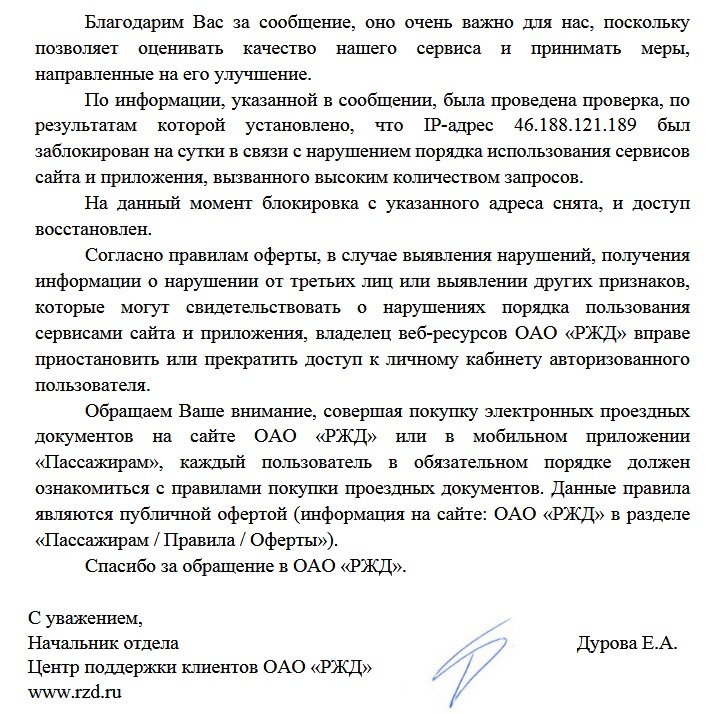 Мне опять заблокировали IP-адрес после покупки жд-билета в качестве одной штуки. Мне здесь давали советы проверить ноутбук на вирус, но я ими так и не воспользовался...