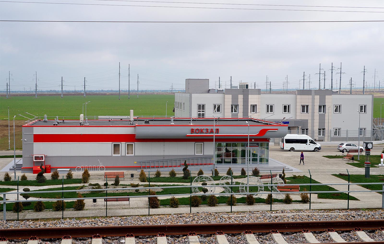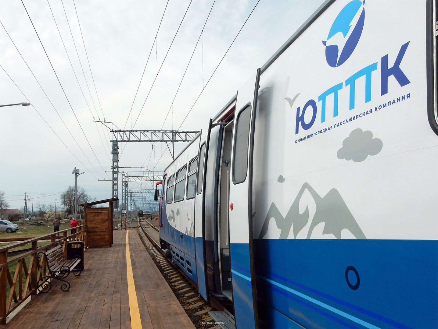 Пригородный поезд Анапа-Керчь на станции Юровский, 15 марта 2020 г.