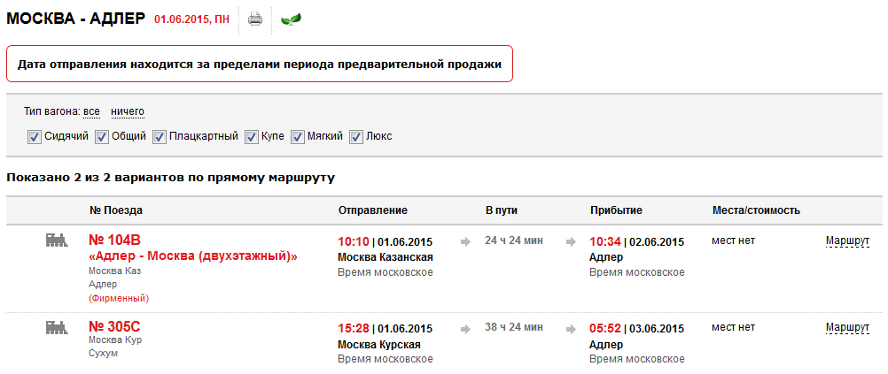 Хотя на какие-то майские даты плацкарт на глаза попадался.