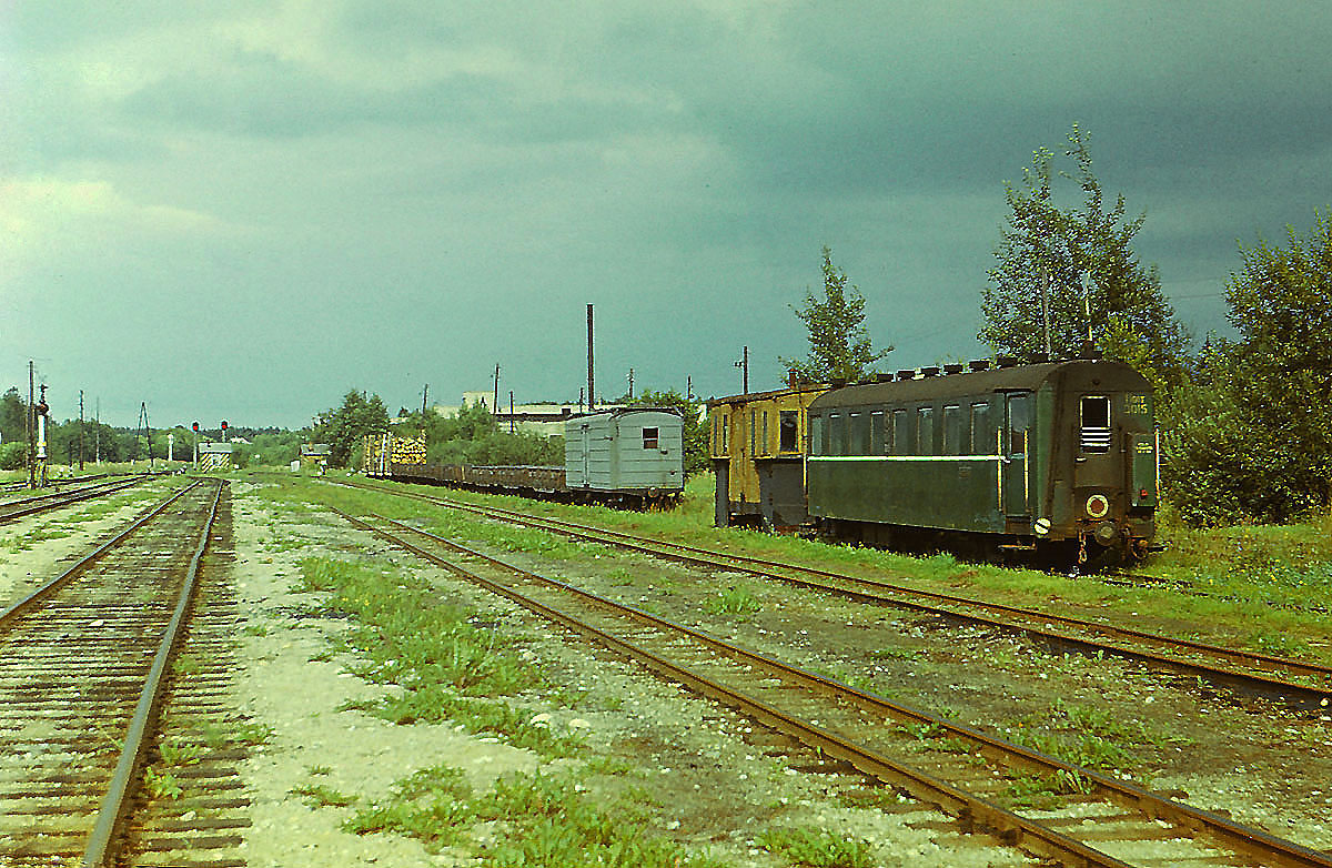 Грузовые и пассажирские вагоны колеи 750 мм на станции Гулбене, Латвийская ССР (18.08.1981):