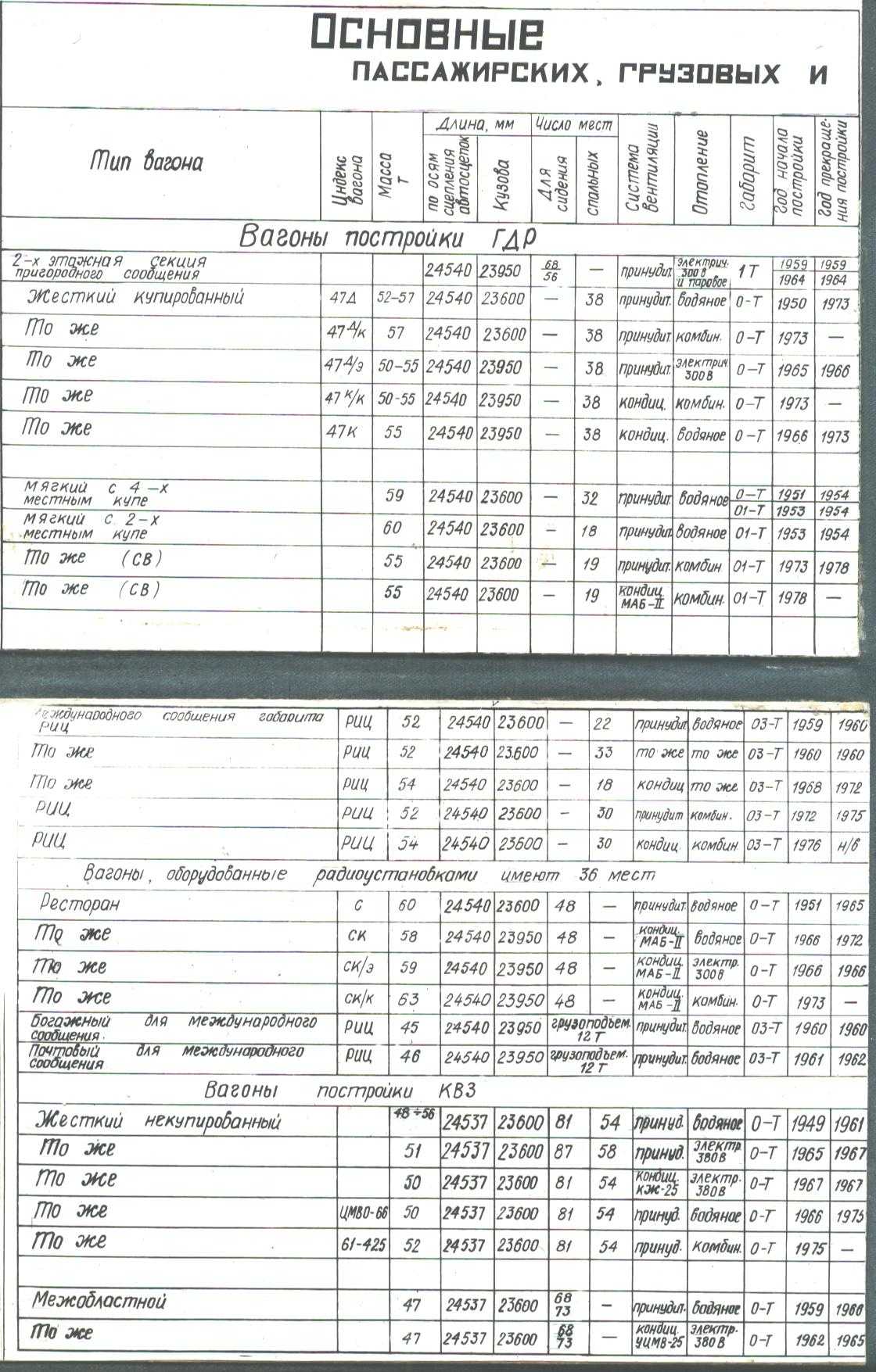 Основные технические данные пассажирских вагонов железных дорог СССР колеи 1520 мм на 1980 год.