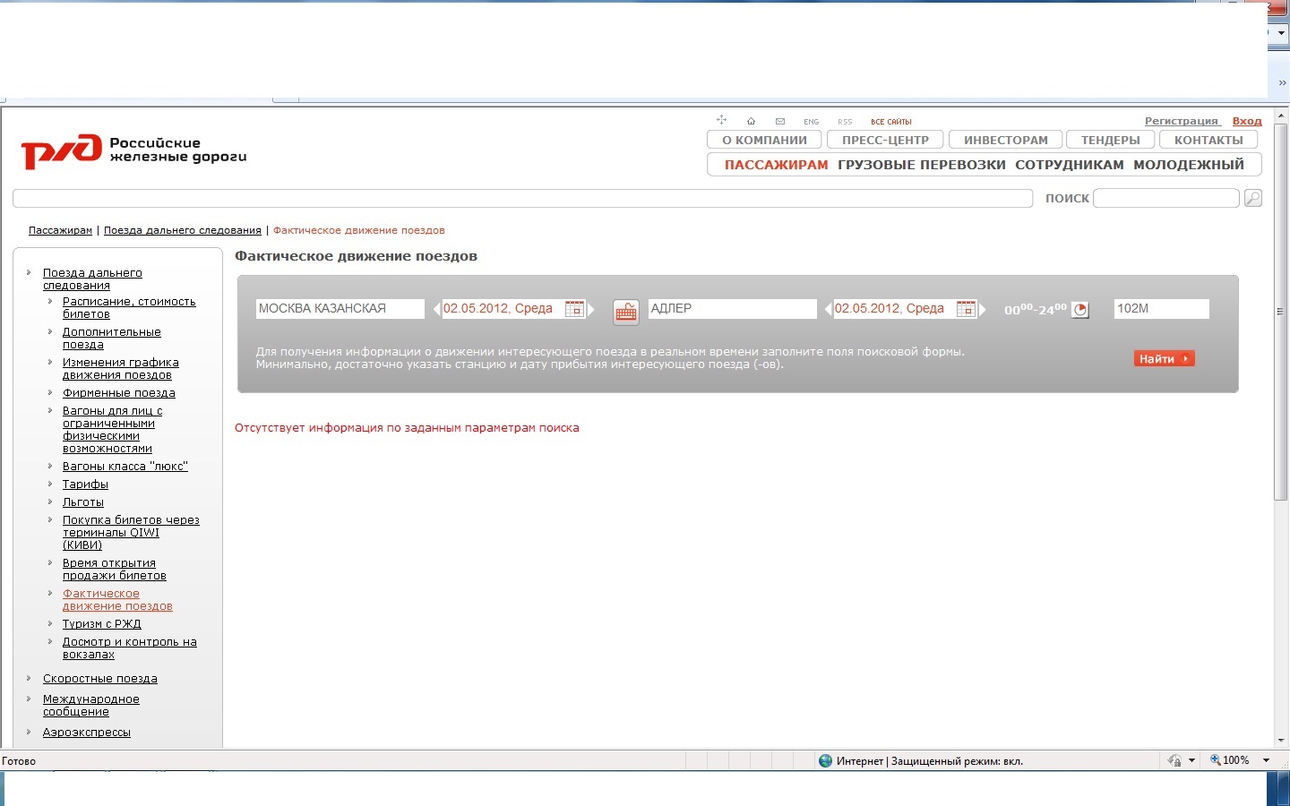До этого смотрел другой поезд и в голове отложилась дата прибытия 02.05.12 и в этот запрос её же и перенес.
