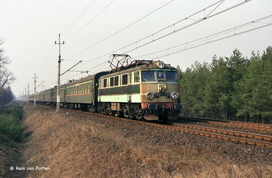 Widać przewrócony elektrowóz EU07-033, który jeszcze w tamtym czasie stacjonował w MD Franowo, wagon pocztowy SŻD, który na linii Brest - W-wa - Berlin i z powrotem obiegał jako ambulans 8 z polską obsadą a z na linii Brest - Moskwa z rosyjską i wagony bagażowy i restauracyjny DR obiegające na linii Berlin - Brest. A dalej widać wagony sypialne SŻD.