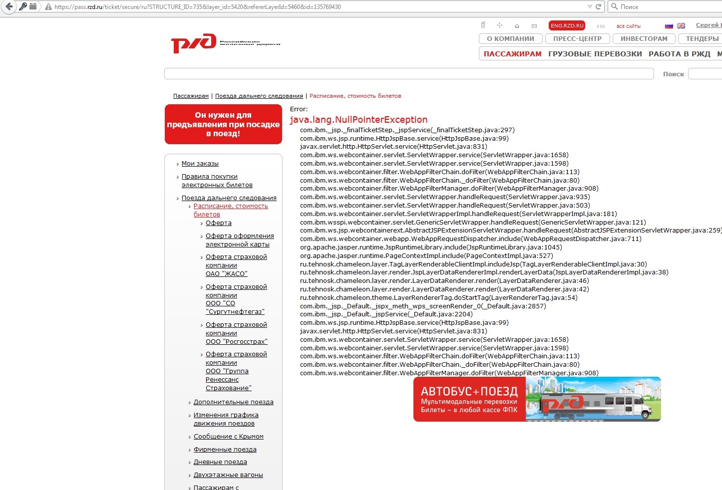 Уже который месяц для программистов РЖД исправить ошибку в коде является непосильной задачей...