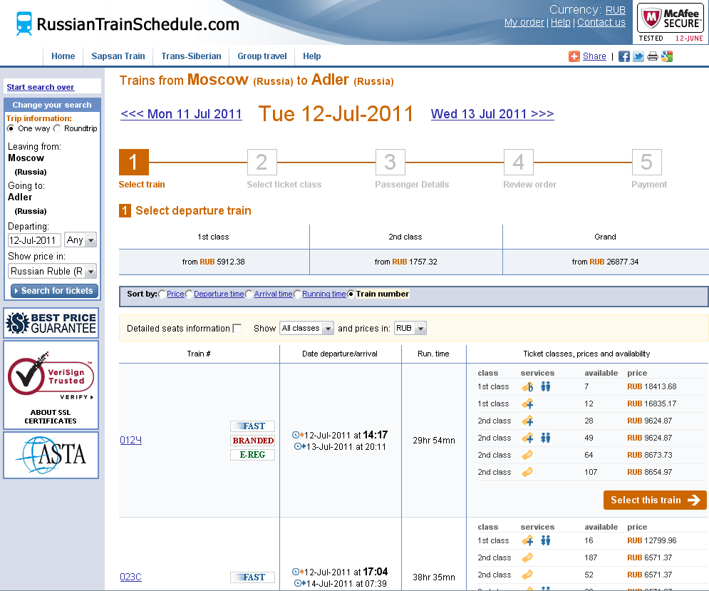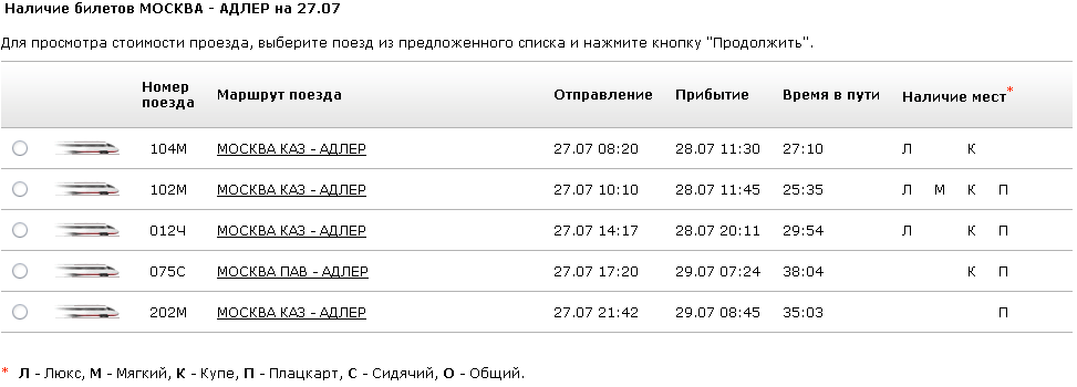 Хочу заметить, что также не отображаются (видимо, выфильтровываются) поезда, которые могут удивить качеством своих вагонов. По крайней мере, при запросе на 14 июня мне не было предложено выбрать место от Москвы до Нижнего на дополнительный поезд 469А (Питер-Горький).