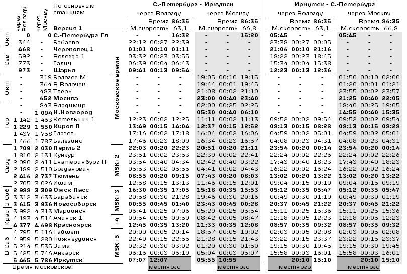 Shadow:3. Время в пути на Иркутск остаётся прежним, на Питер сокращается на 4 часа (сейчас 009И идёт на 4 часа дольше, чем 010И, ползёт от Новосиба до Кирова).