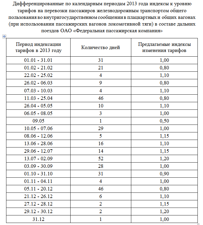 Сейчас много спекуляций по данному вопросу. Есть информация, что ФСТ по предложению РЖД возможно скорректирует индексацию с 10% до 20% по сравнению с 2012 годом: мол дотации урезали, давайте повышать тарифы опережающими от ранее запланированных темпами.
