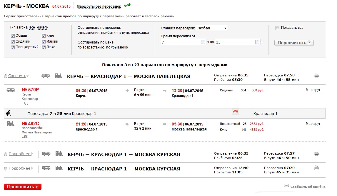 Например к поезду Краснодар - Москва купить Единый Керчь - Краснодар.
