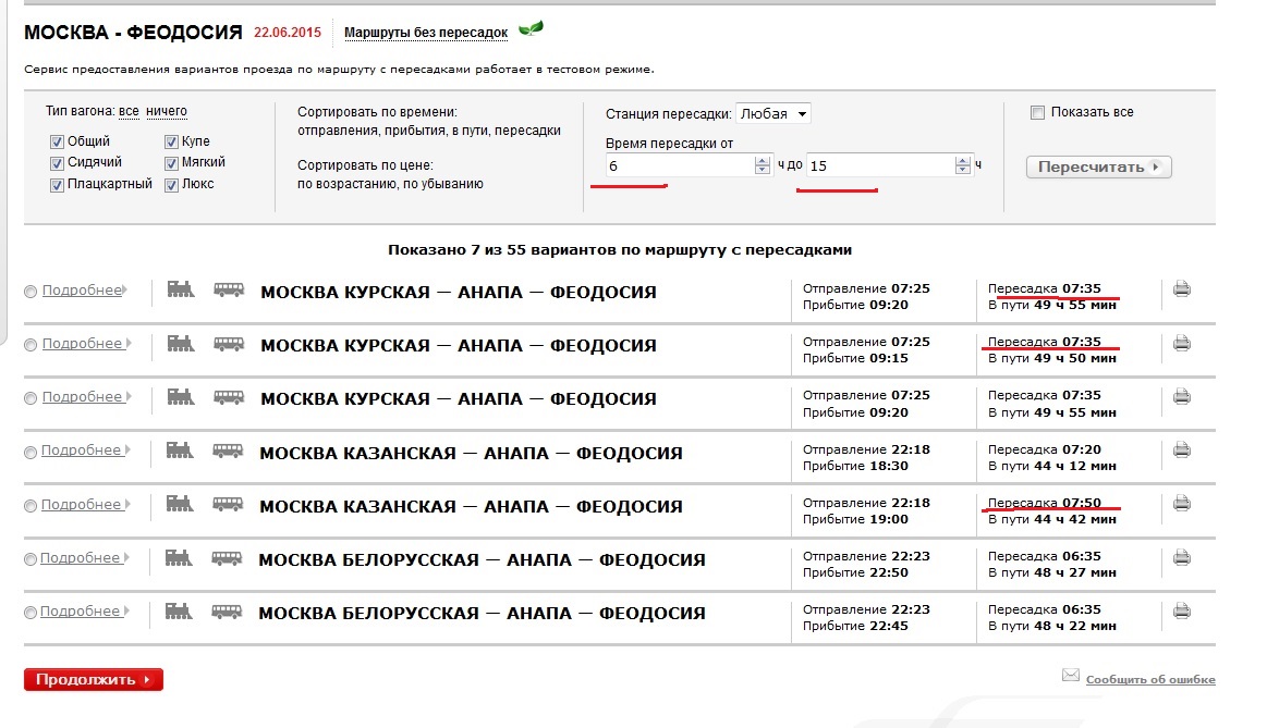 Вот Москва - Феодоссия на 22.06.2015, пересадки больше 6 часов