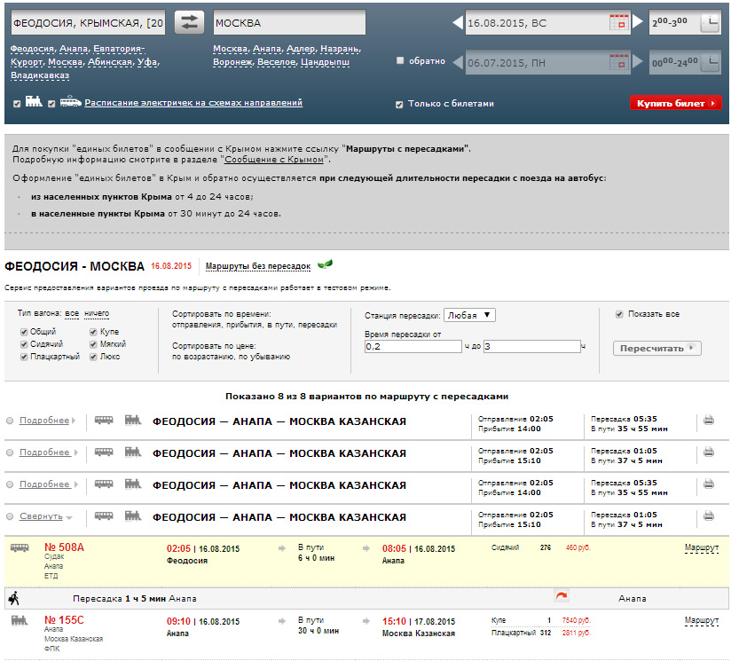 Действительно,в запросе маршрута из Крыма нижняя граница времени 0,2 и приходится терять время на исправление этого значения на минимальное время 4 часа и делать лишний запрос. А это потеря времени.nataly-m: Как раз в обратном направлении система выдает ЛЮБЫЕ интервалы не пересадку!!! Даже 40-50 мин - вопреки оговоренным в правилах 4 часам.