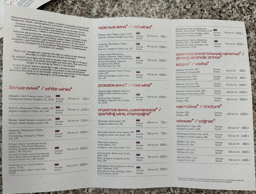 Сфоткал я, естественно, менЮ. А вернулись в вагон по причине того, что не было желания слушать вопли неадеквата, да и время обеденное было, поезд вечером в Москву приезжал - дома и отметили.
