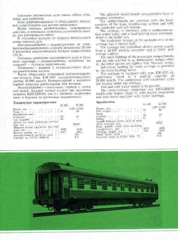 Тара 58 тонн, 24 места (8 первой категории, 16 второй). Габарит 1-ВМ.