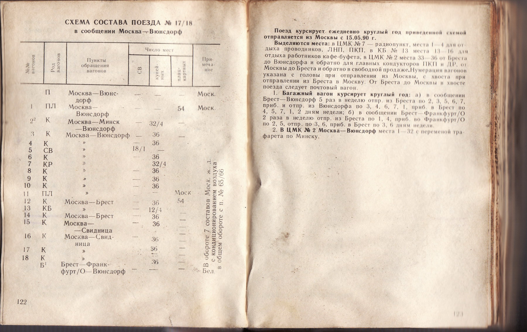 SM@TRON: Подробное расписание поезда № 17-18 «Москва – Вюнсдорф» из служебки БЕЛ ЖД за 1990-1991 годы: http://wunsdorf.livejournal.com/1612.html