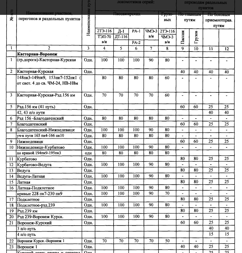 supermax: Если рассматривать пример сабжа выше: то Воронеж-Курск, 250 км, маршрутная скорость 44,7 км/ч. В принципе с 335 минут на 30-40 минут можно было бы сократить, если бы был 2-й путь. Но он там никогда не нужен был...