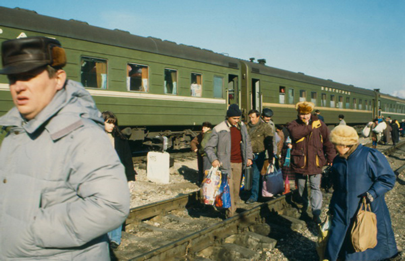 At the Kishinev station. A train «Kishinev – Moscow» (80th years). A wide slide. A camera of Pentaсon.