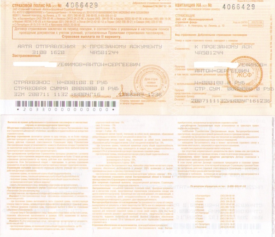 И вся низость покупки билета, с навязанной страховкой, состоит в том, что "полис" кассир ПРЯЧЕТ между билетом и его копией!!!!!!