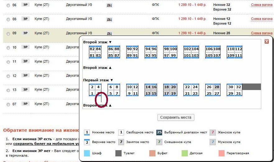 Похоже, уже исправили. А что обозначает вертикальная линия на картинке расположения мест?Vladimir M: ХА схему вагонов то показывает одноэтажную на 36 мест.