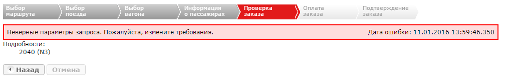 Вводите на русском. Это же - межгос, а не международка.bagrettin: Пытаюсь купить билет на поезд Таллин-Москва, но сайт РЖД выдает ошибку 2040 (N3) - Неверные параметры запроса.