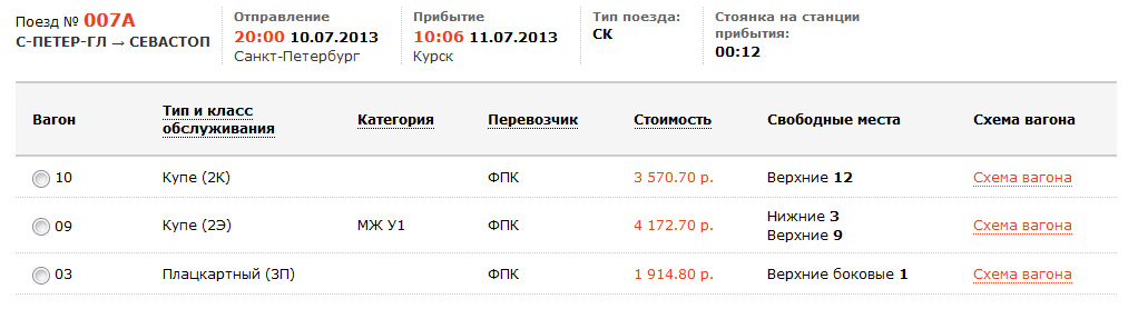 Но все равно местами нет схемы на купе с услугами :)