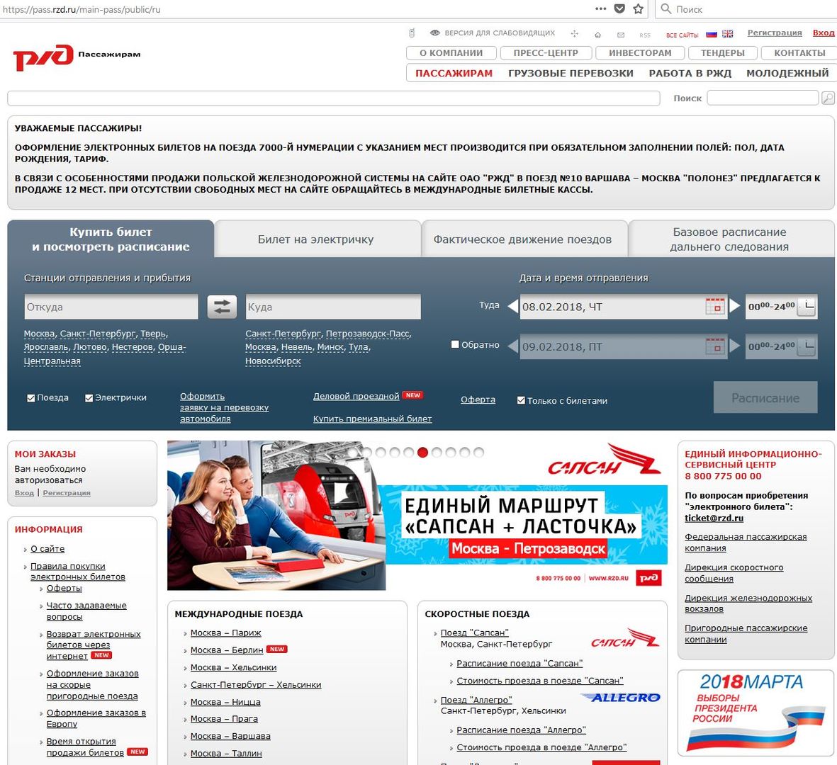 Изначально брал билет через оф.сайт, после покупке билета сайт выдал ошибку. Деньги на карточку вернулись через 20 минут. Дальше рисковать я уже не стал (сайт вовсю тупил), и взял билет в кассе вокзала.