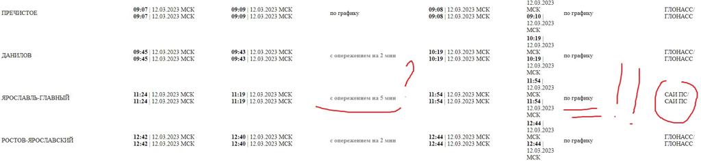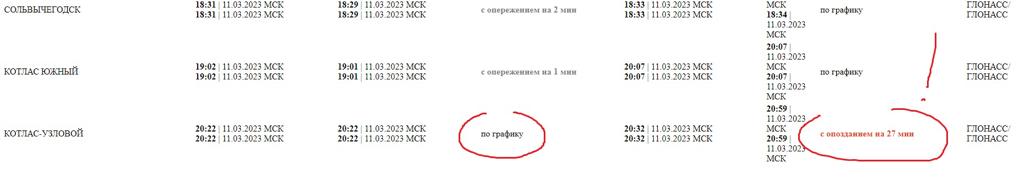 Смотрите. По ссылке второй. Где поезд 375. Воркута -Москва. Вы смотрите на время отправления «фактическое» в середине. А надо смотреть на «фактическое» которое правее, где указан источник -СЦБ, ГЛОНАСС. Иначе получается так, что средняя графа указывает по станции Котлас - Узловой будто поезд отправлен по графику, хотя он отправлен с отклонением +27 минут.Jegor: Ну вот ещё пример, какраз в Воркуте: https://pass.rzd.ru/tablo/public/ru?STR ... de=2000002