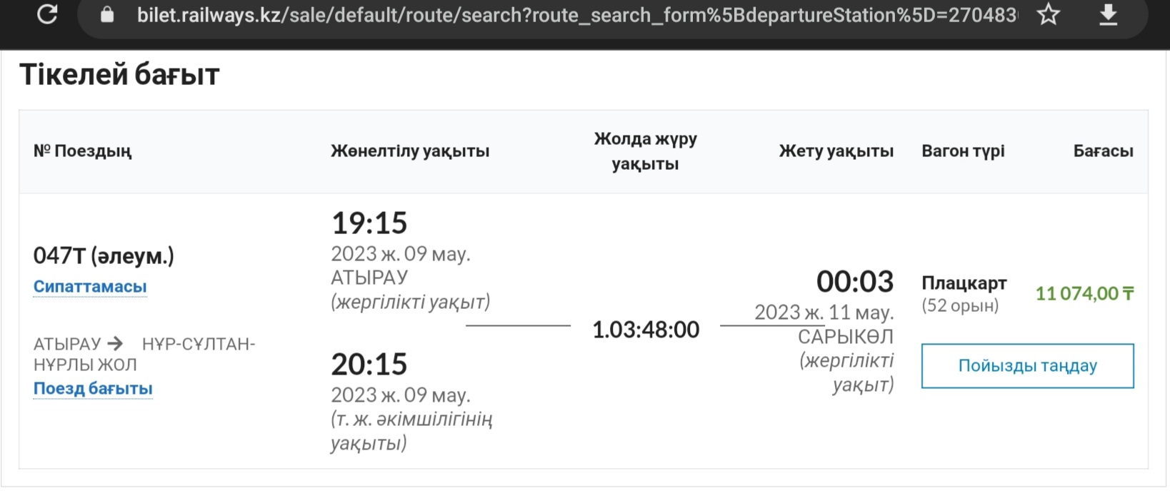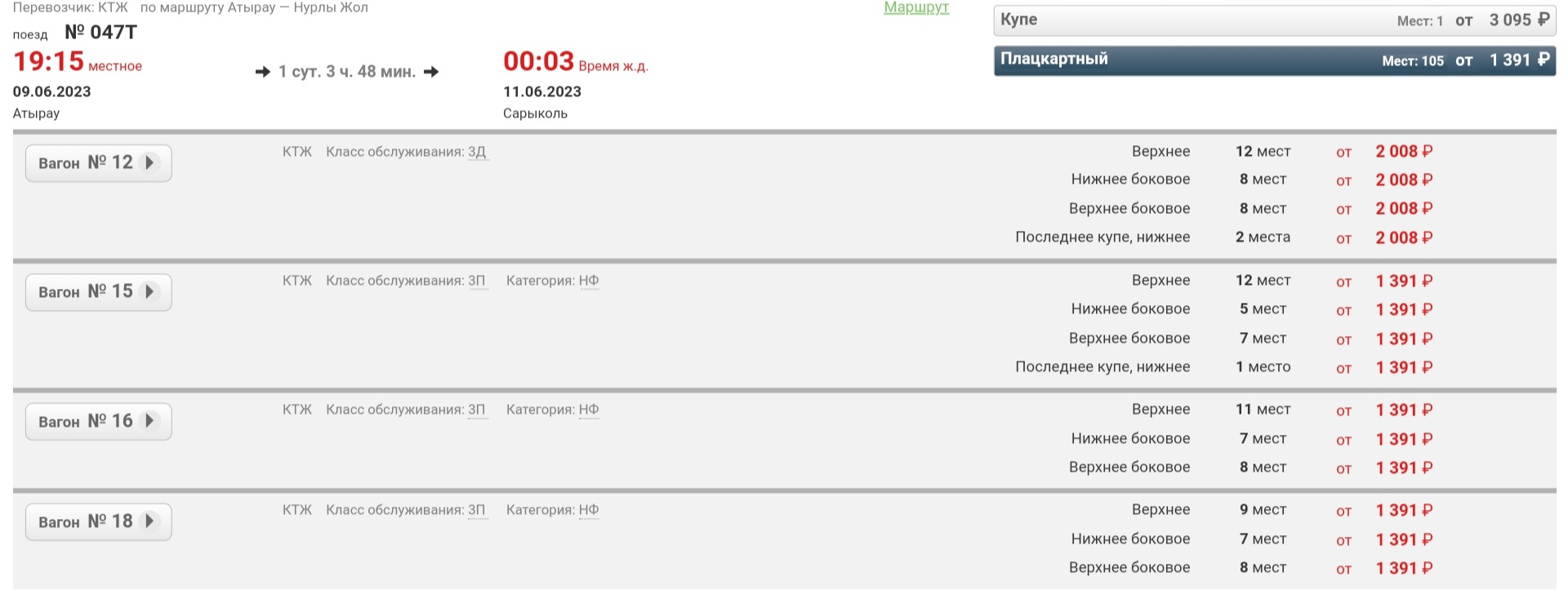 Продолжаю наблюдения ... сегодняшний поезд 047Т увёз из Атырау воздух на 66 местах, на последующие даты в Астану "мест нет".