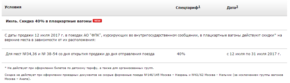 С 17 числа по факту. Причем было с 12 и пока так и есть в пресс релизе. Причем, если поезд отправляется например, из Адлера 16го то скидки вам не видать. хотя вы едете 17 из Воронежа в Питер, навпример