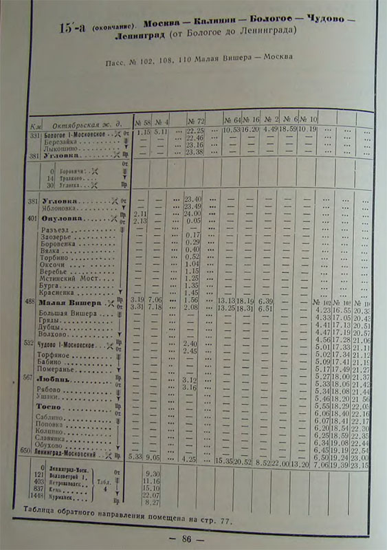 Спрашиваете — отвечаем. 1961 год (тепловозная тяга!). Обратите внимание на график курьерских поездов №4 (Москва — Мурманск) и 6, 10 (Москва — Ленинград).