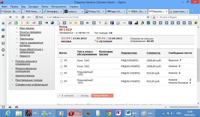 Решил проверить, появляются ли билеты в системе за 3 суток до отправления из Москвы на челябинский поезд. Но какой-то глюк системы. На этапе выбора вагона ничего не изменилось - как было семь мест до 21.54, так и осталось позже. И уже около 22:00 черт меня дернул проверить, что это за места, зашел в выбор вагона, а там внутри мест уже больше. Я вот не понял, что это за глюк. Причем он же повторяется и в личном кабинете, и просто на сайте при проверке наличия мест. И в разных браузерах. Смотрите.