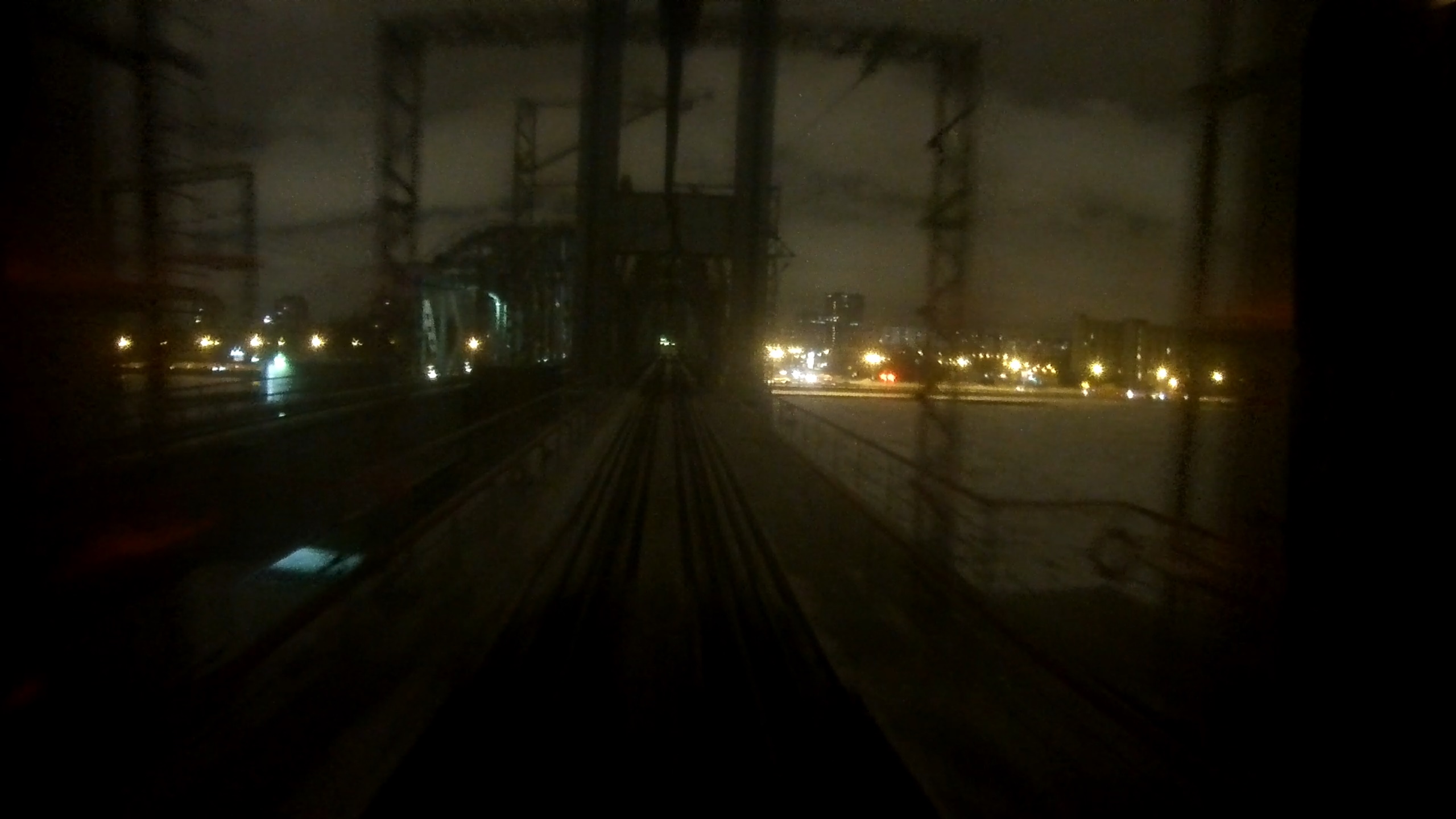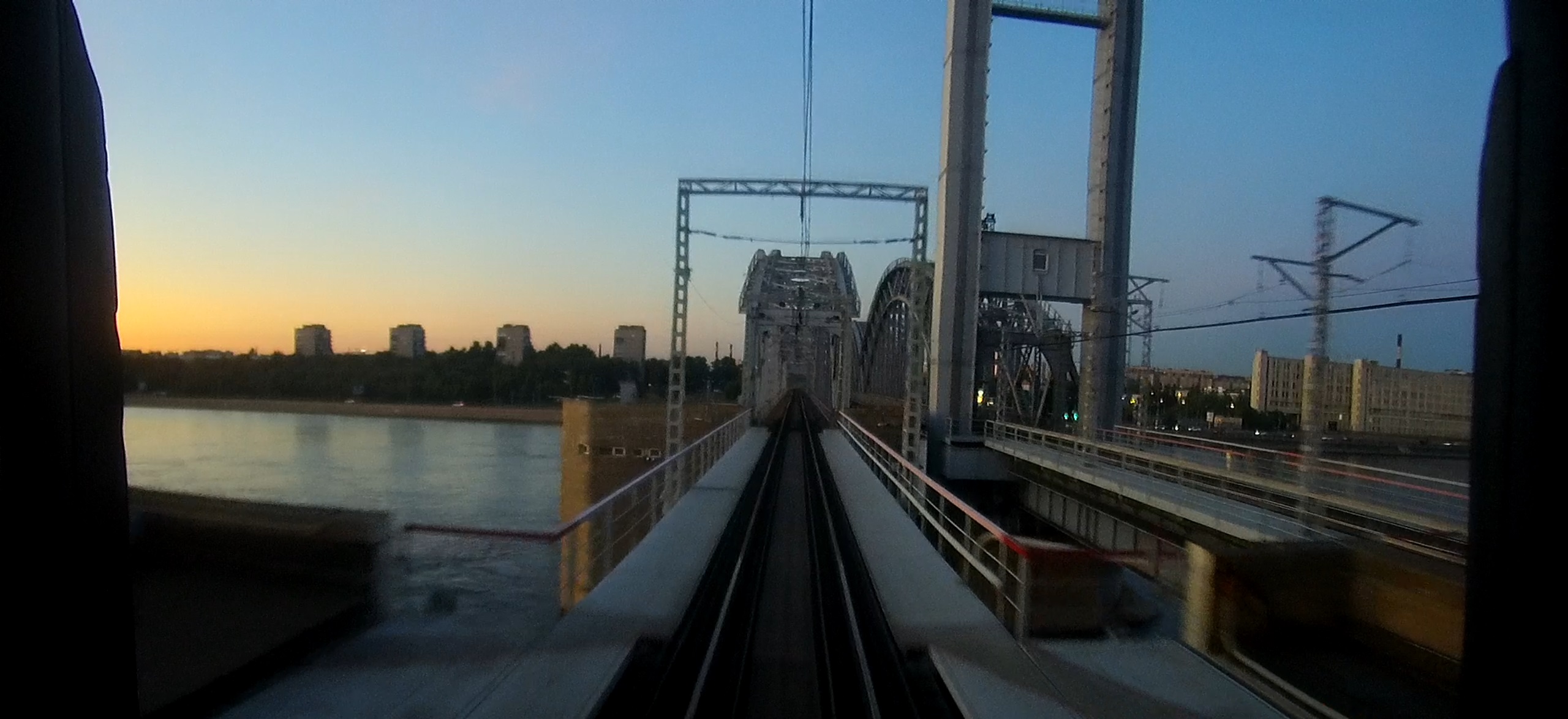 Но вот зимой, как показывает практика, даже на хорошую камеру не видно почти ничего, а летом, пока ночи светлые, хоть что-то заснять можно. Но только летом мне не очень везло, потому что в хвост 677-му постоянно цепляли какие-то закрытые вагоны, а единственный раз, когда их не вцепили - пропускали по северному мосту, он хоть и клон старого, но в деталях отличается.