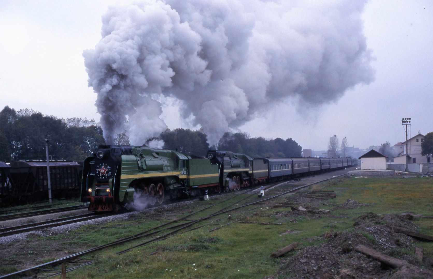Электропоезд ЭР2-518 на станции Львов, Львовская область (1993-й год):