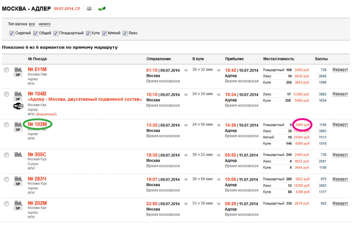 Есть, два штука.кассир: Только сегодня с удивлением обнаружила, что в составе 102го есть два плацкартных вагона.Мест на них ни разу в продаже не видела. Они вообще есть? и где цену глянуть при отсутствии мест?
