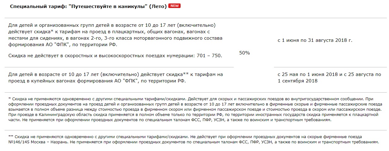 Специальный тариф: "Путешествуйте в каникулы" (Лето)