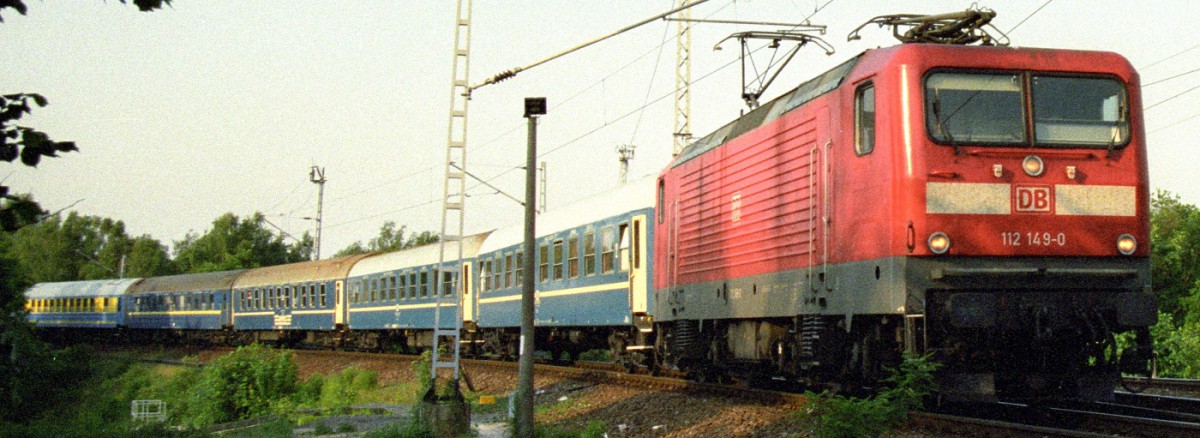 Gibt schon noch einige Fotos - ist nur noch nicht digitalisiert (müßte dann auch auf das Forum für Wagen ausweichen, weil manche Aufnahmen erst 9 Jahre alt sind). Den D 344 hatte ich übrigens etwa einen Monat früher am 15. Mai 2003 mit Wagen der FS fotografiert. Die waren nicht planmäßig in dem Zug. Hier sieht man auch die 6. Version der "bunten" originalen WLABm´81/83 mit zwei gelben Streifen unter den Fenstern.
