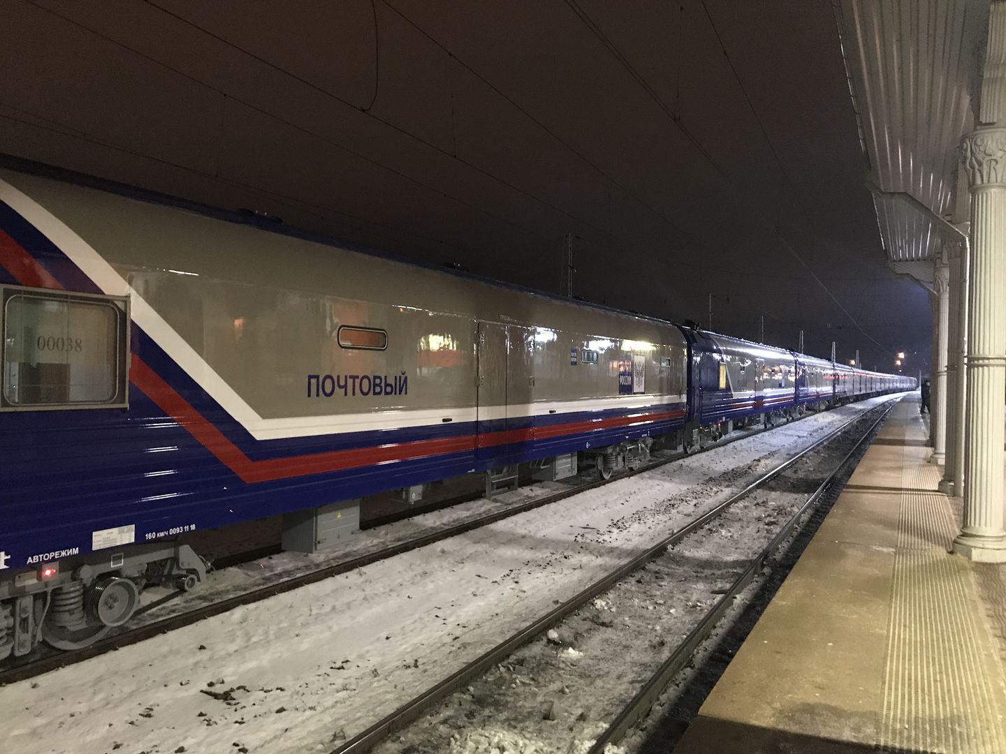 Новые багажно-почтовые вагоны модели 61-4505 производства ОАО "ТВЗ", перегоняемые в Екатеринбург, перегон Благовещенское — Волоколамск, Московская область (31.XII.2018):