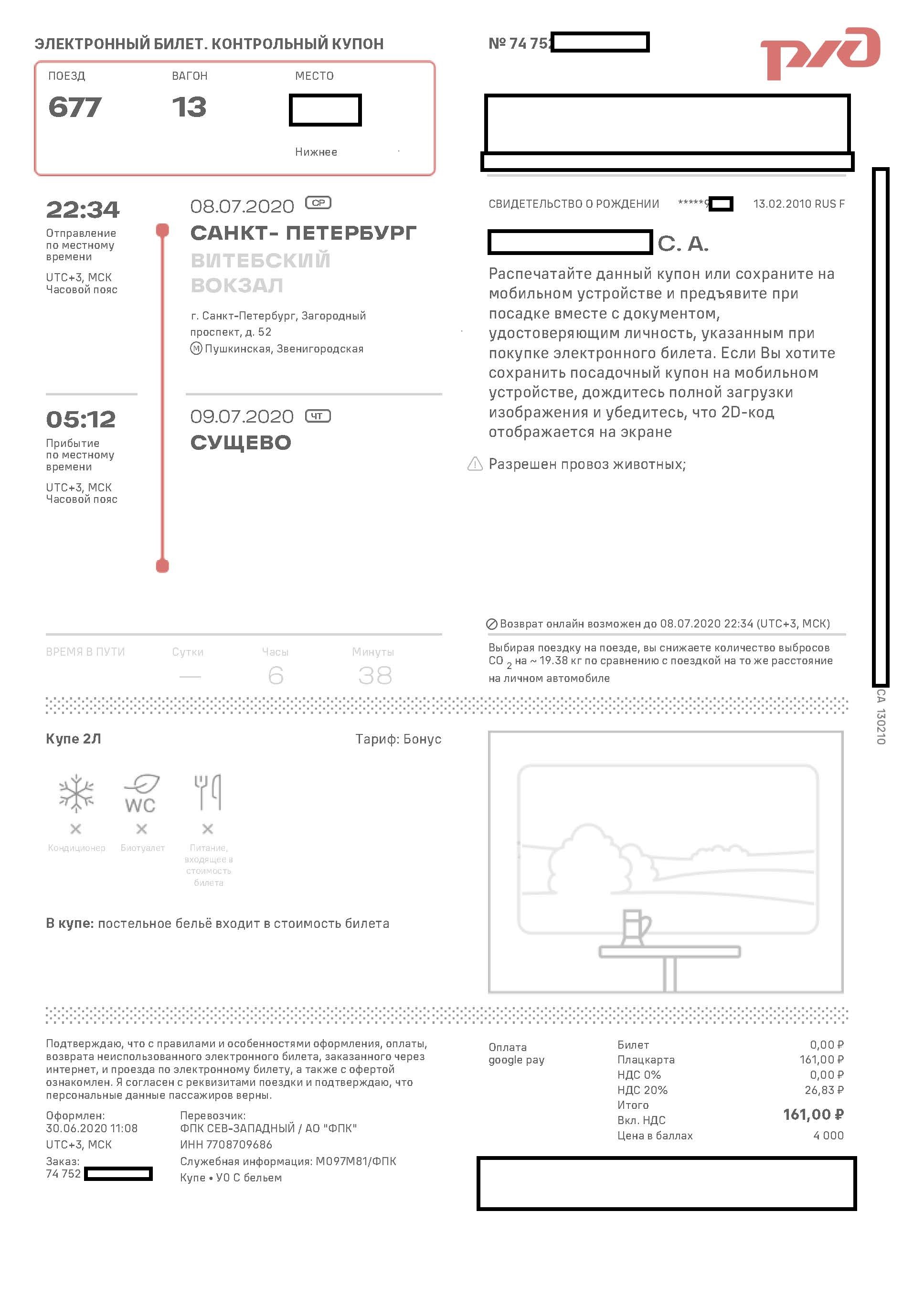 причём, из уважения к РЖД, совершенно бесплатно
