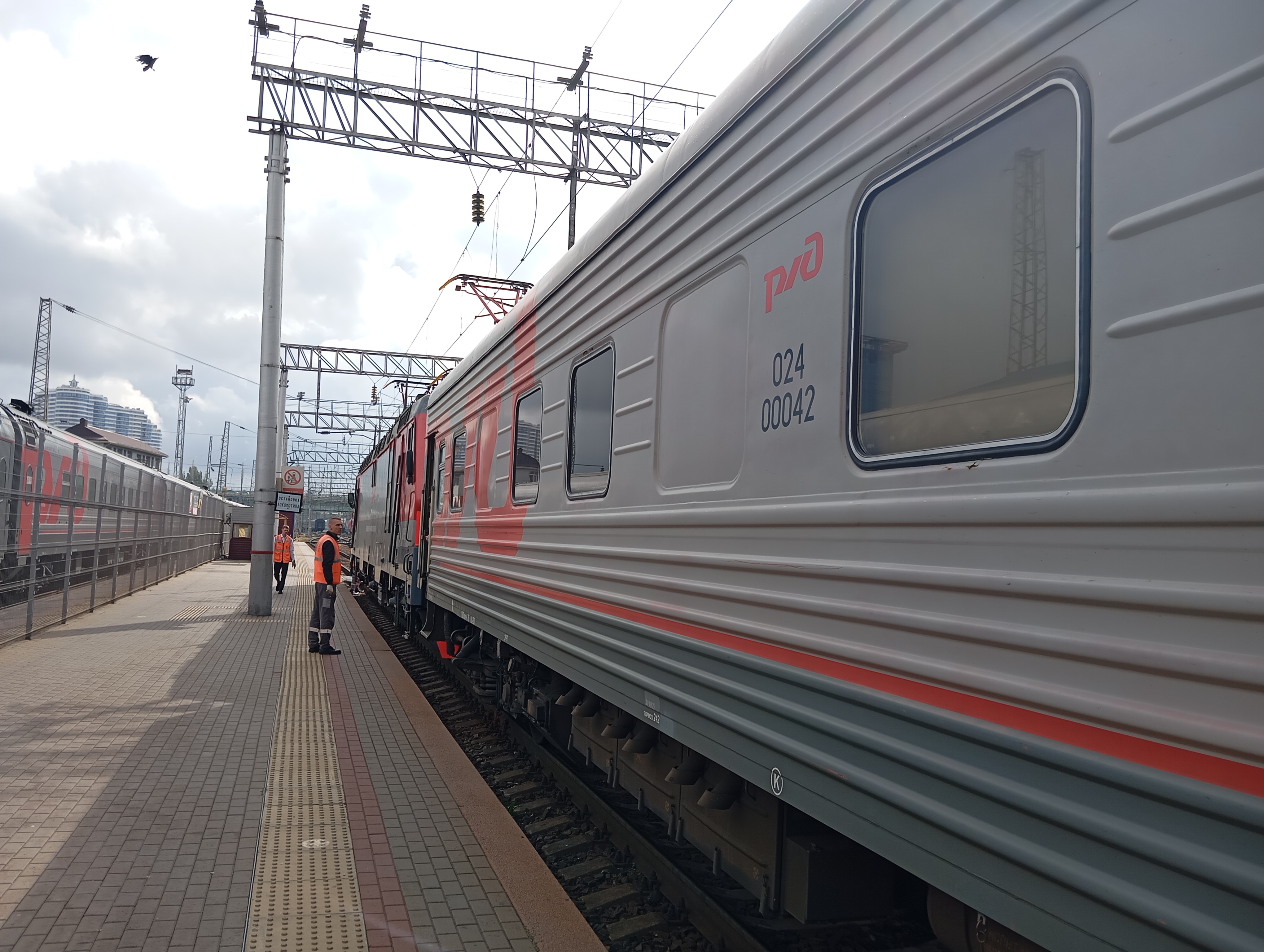 Поездка в Таганрог была практически обычной, разве что в голове перед 26 и 25 вагоном был с Москвы вагон № 30 Москва Ростов на 8 или 12 мест. По Ростову нас отцепил тепловоз (ЭП20+30+26+25) перетащил на 2 путь к пустым, прицепил 25 и 26 с людьми, а затем повез 30 вагон осаживать в парк где пасс вагоны (между главным и пригородным).
