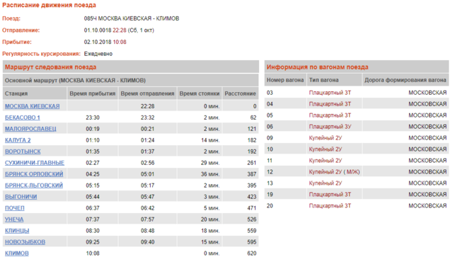 ОТПРАВЛЕНИЕМ ИЗ ОРЛА С 3/10 ЕЖЕДНЕВНО В 0.59, ПРИБЫТИЕМ В МОСКВУ КУР С 3/10 ЕЖЕДНЕВНО В 6.31.