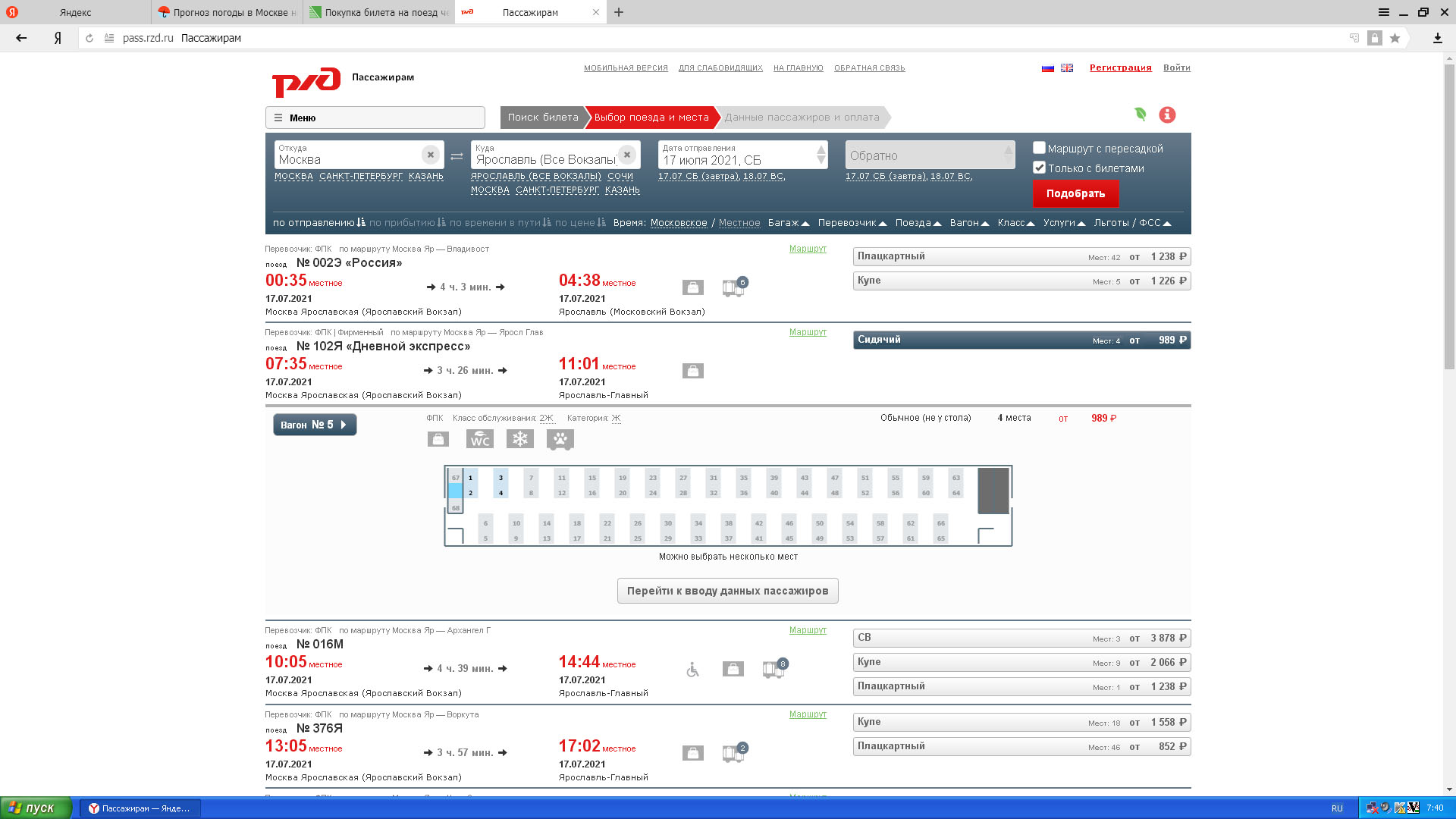 странно, вообще не обнаружила мест от сергиева Посада до Ярославля на 102-й на 17.07