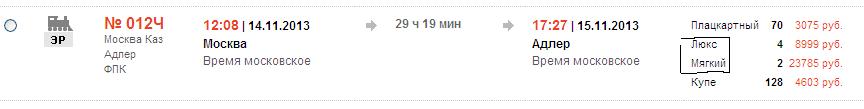 Скорее всего только в кассах. И я Вам более того скажу - в ТТСе не получиться купить билет в VIP-вагон более, чем на 1 человека - по крайней мере год назад при вводе двух фамилий предлагалось оплатить два купе... Хорошо, что вовремя заметил это и не стал оплачивать заказ, ибо с учетом того, что я хотел взять билеты за 1,5 часа до отправления - можно было бы представить ущерб для кармана...a-s-grif:возможна только в кассах или есть какой-то секрет, позволяющий купить билет в данном сочетании через интернет?