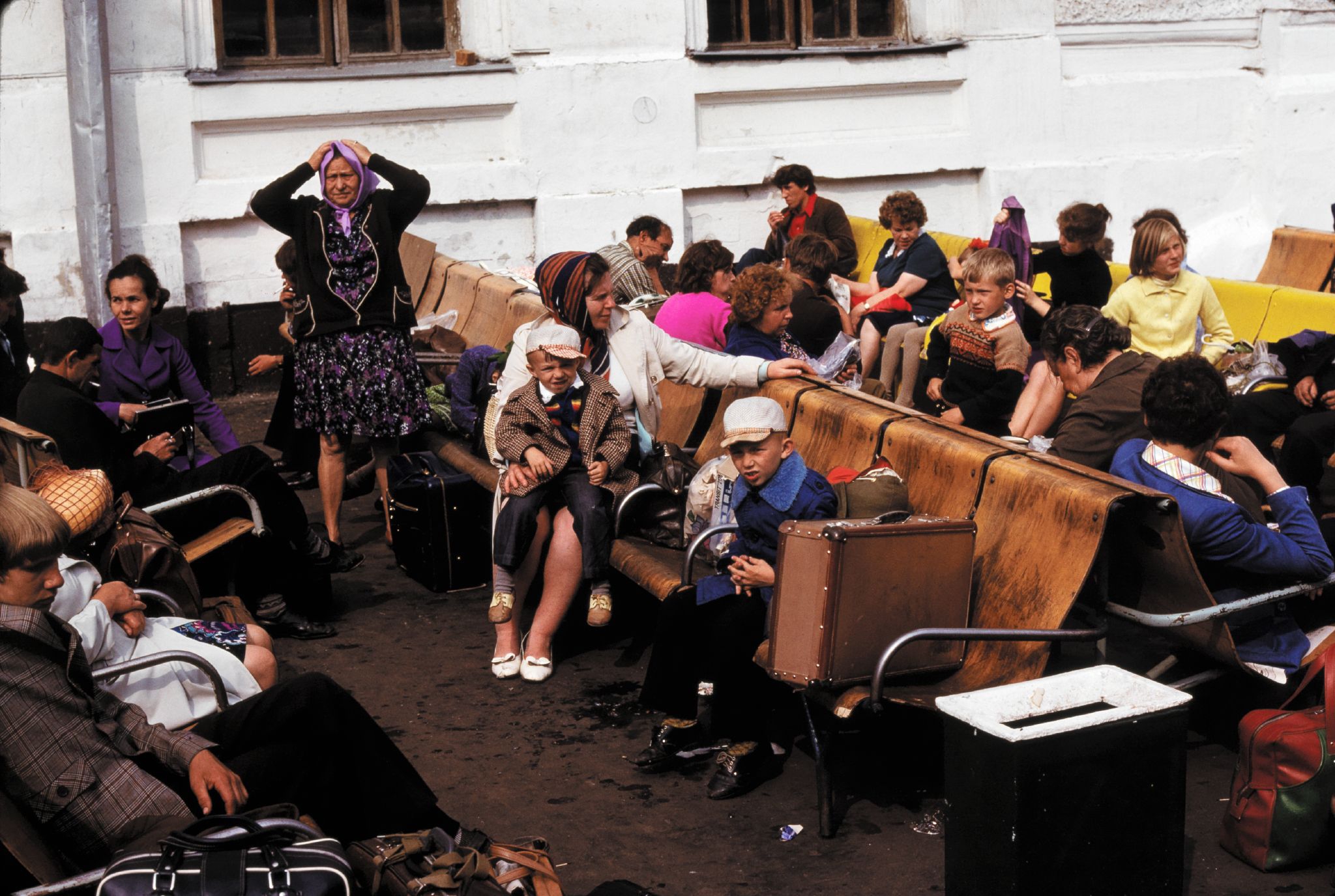 Moskau, Vor Jaroslawl Bahnhof, Wartende 07.1979.