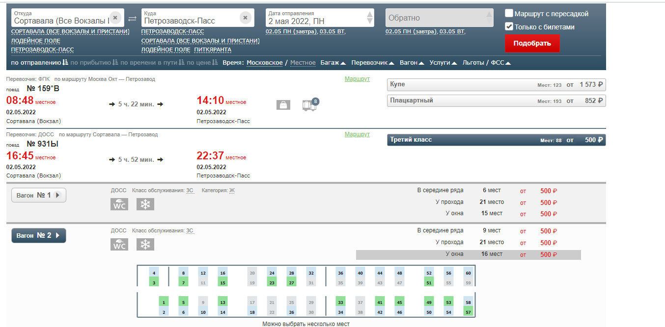 И в правду в приложении норм.. И на Орлан даже можно купить из Лодейки в Сорту)) Спасибо.megapups: На второе мая во втором вагоне свободны места: