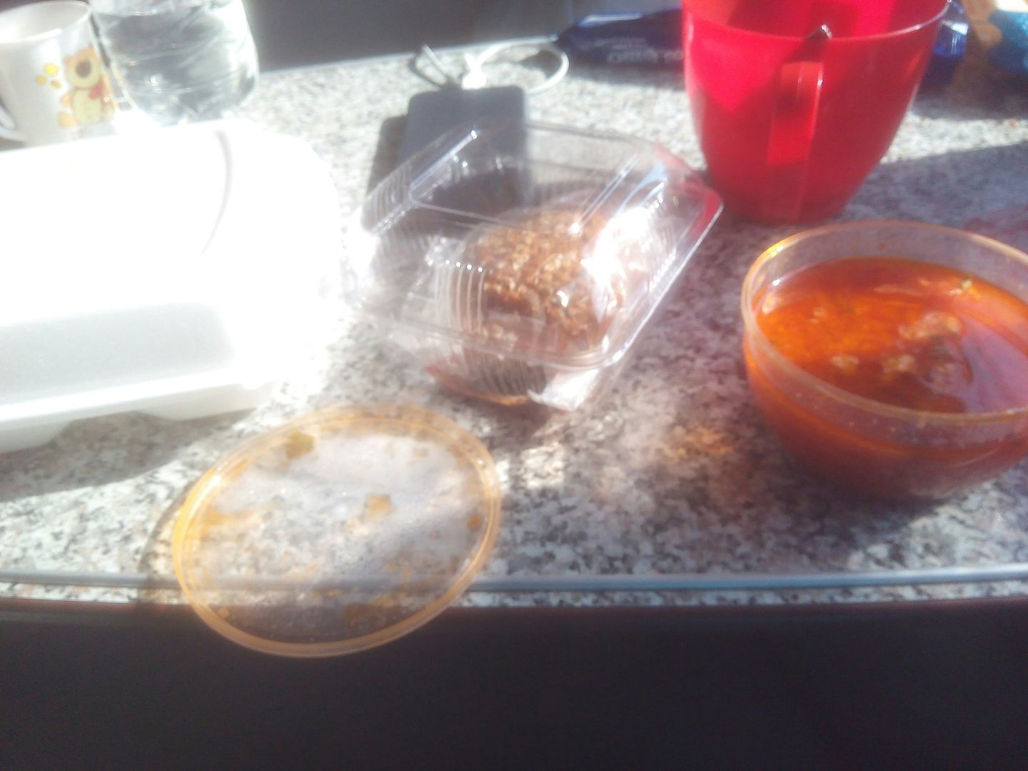 И так, докладываю. Питание принесли на мое место в 14:15 горячим. Всё более чем съедобно. Булочка на фото ржаная. Также на фото не попал пакетик чая и сахар. За 300р. просто супер